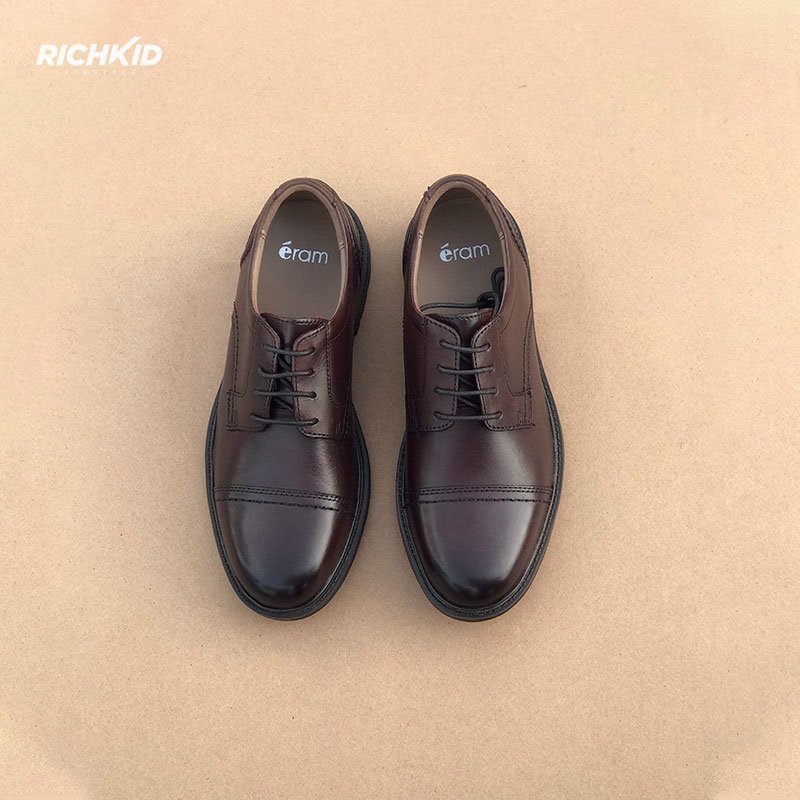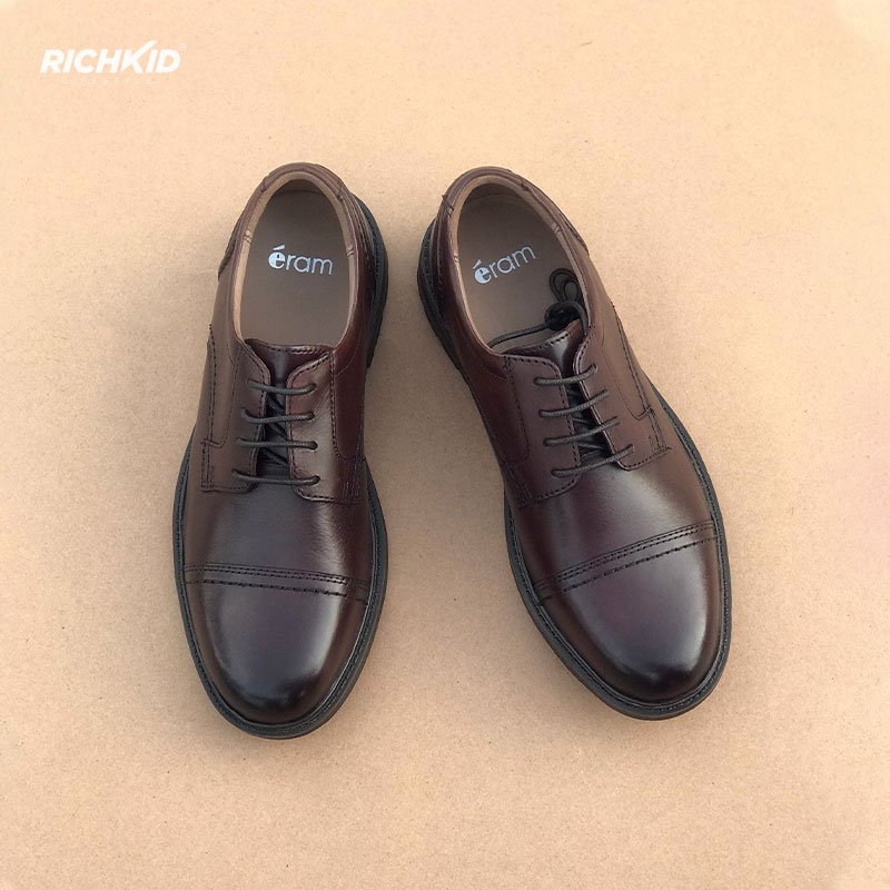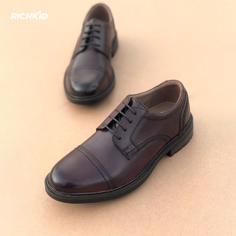 Stylish classic derby shoe with upper made of full grain Tuscany vegetable tanned leather in dark brown and handmade decorations.
