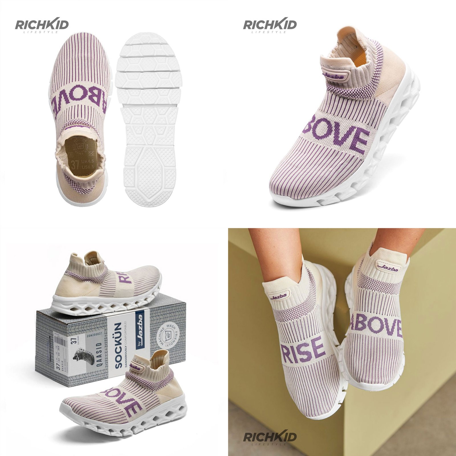 ?CONVENIENCE: Easy to slip on and slip off. Stretchable upper without lace. The upper made of an ultralight hybrid mix of sock offers the ultimate feel. It fits like a second skin. The excellent airflow and breathability makes your activity time tireless.